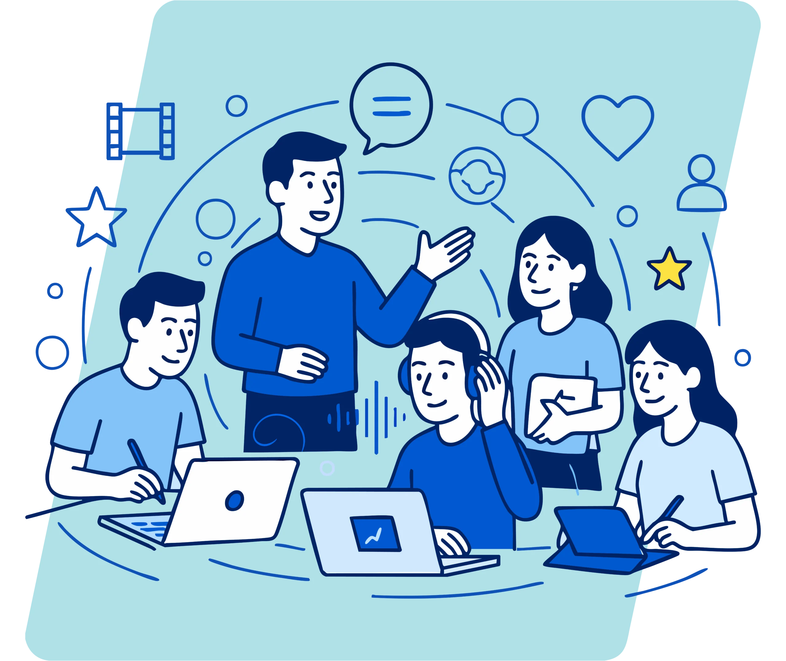 Wir arbeiten mit erfahrenen Animationsprofis, Illustratoren, Sound Designern sowie SEO- und GEO-Experten zusammen, die je nach Projektanforderung eingebunden werden.